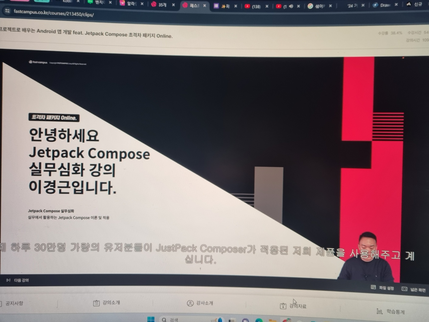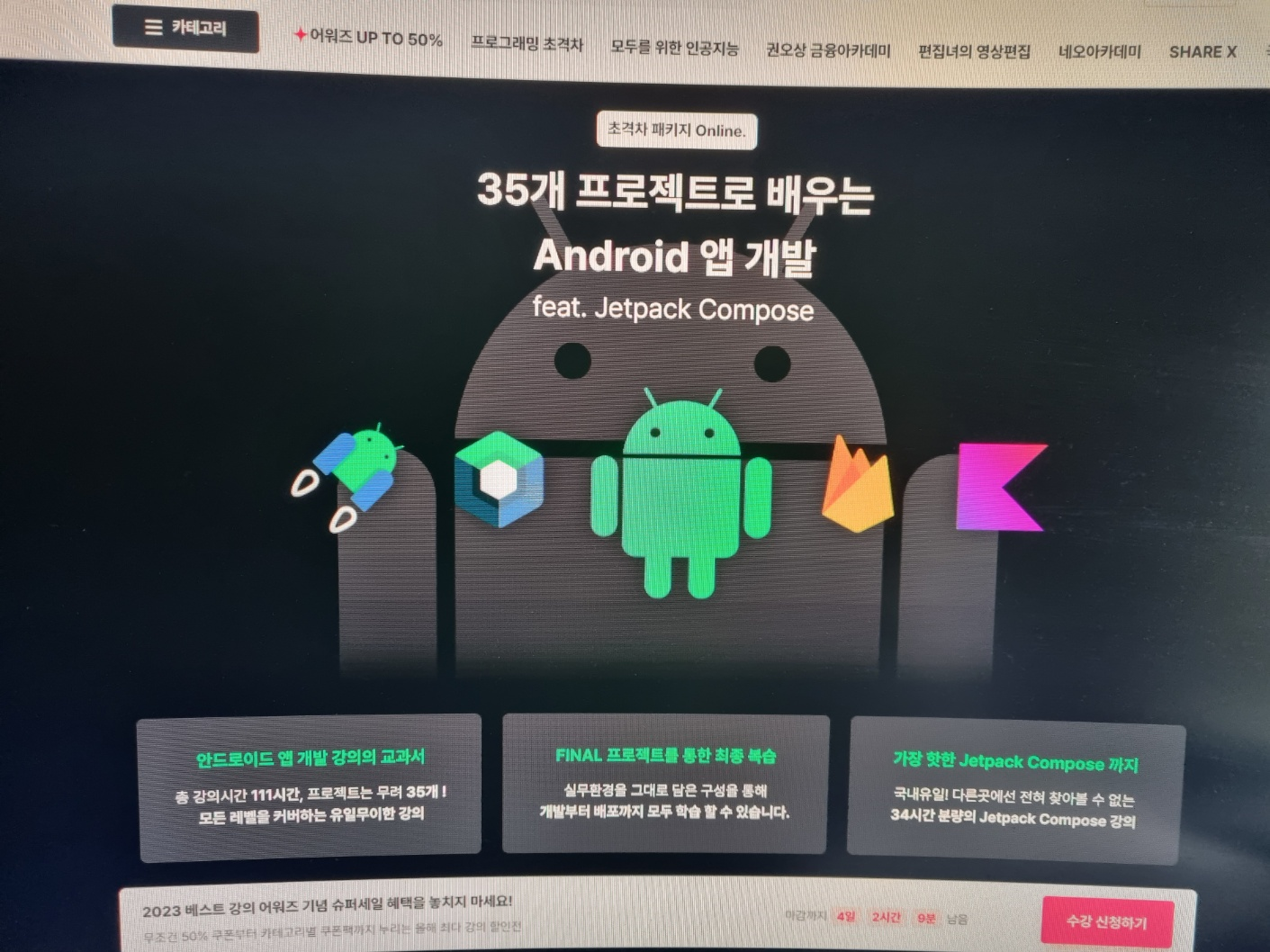 제가 수강한 강의는 '35개 프로젝트로 배우는 Android 앱 개발 feat. Jetpack Compose 초격차 패키지 Online'입니다.